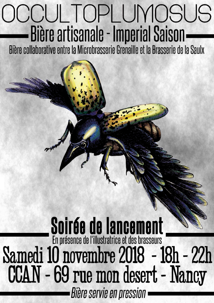 Soirée de lancement de la bière Occultoplumosus Date : 10 novembre 2018 Collectif : Autre Zone géographique : Nancy Support : Affiche Lieu autogéré : CCAN
