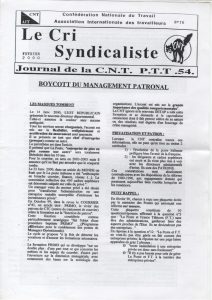 Le cri syndicaliste – N°16 Date : février 2000 Collectif : CNT Thématiques : Syndicalisme, Travail Zone géographique : Nancy Support : Journal et fanzine Nom de média : Le cri syndicaliste