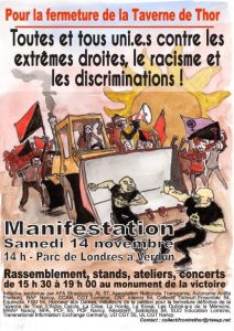 Pour la fermeture de la Taverne de Thor Date : 14 novembre 2016 Collectif : Anonyme Thématiques : Antifascismes, Antiracismes, Manifestation, Vie politique locale Zone géographique : Nancy Support : Affiche
