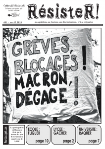 RésisteR #60 – La chienlit c’est lui Date : février 2019 Collectif : RésisteR Thématiques : Antifascismes, Critique des médias, Écologies, Mouvements sociaux, Police, Santé et soins, Surveillance Zone géographique : Nancy Support : Journal et fanzine Nom de média : RésisteR Autre lieu : Fac de lettres