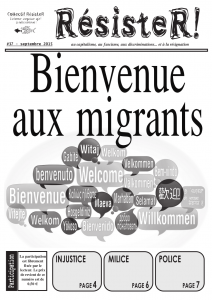 RésisteR #37 – Bienvenue aux migrants Date : septembre 2015 Collectif : RésisteR Thématiques : Anticapitalisme, Contre cultures, Police, Syndicalisme, Travail, Vie politique locale Zone géographique : Nancy Support : Journal et fanzine Nom de média : RésisteR