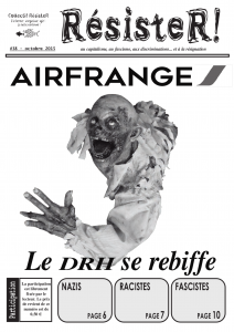 RésisteR #38 – AirFranche, le DRH se rebiffe Date : octobre 2015 Collectif : RésisteR Thématiques : Anticapitalisme, Antifascismes, Antinucléaire, Antiracismes, Bure, Écologies, Internationalisme, Syndicalisme, Travail, Vie politique locale Zone géographique : Nancy Support : Journal et fanzine Nom de média : RésisteR
