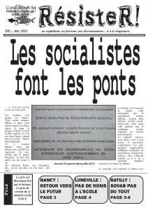 RésisteR #20 – Les socialistes font les ponts Date : mai 2013 Collectif : RésisteR Thématiques : Aménagement du territoire, Anticapitalisme, Antinucléaire, Bure, Écologies, Justice, Migrations, Mouvements sociaux, Religions, Vie politique locale Zone géographique : Nancy Support : Journal et fanzine Nom de média : RésisteR