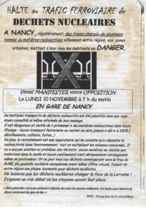 Secrets défenses sur les transports nucléaires Date : 2003 Collectif : Cacendr Thématiques : Antinucléaire, Manifestation Zone géographique : Nancy Support : Tract